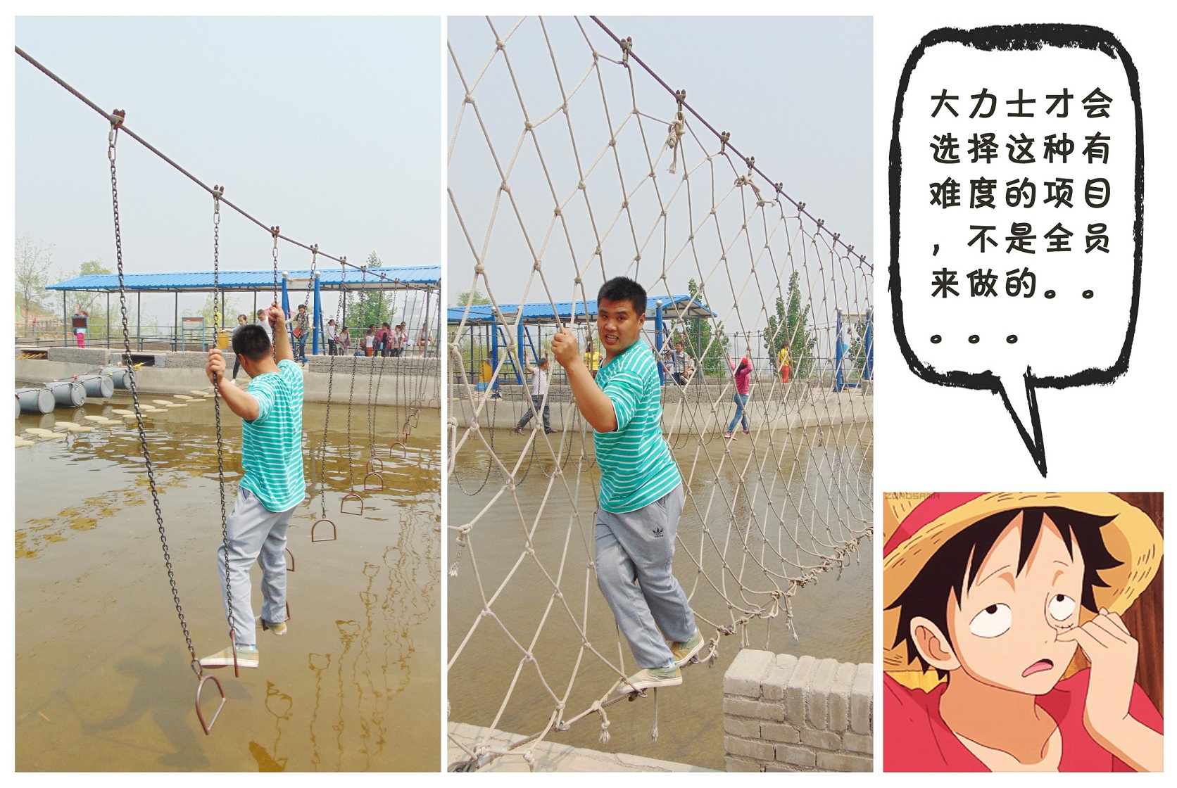 從山寨的點將臺、虎賁營、三省六部、羽林軍再到高空滑索、海盜產、碰碰車、密室逃脫,將隋朝、民國、現代融合于一個山寨,古今穿梭,讓人好不愜意。——華源一直堅持以人為本,不論是工作,還是生活,不論是上下級,還是同事之間,做好溝通與交流,凡事多多征求大家的意見,力求建立和諧的工作氛圍,華源配圖文字版春游,走起~